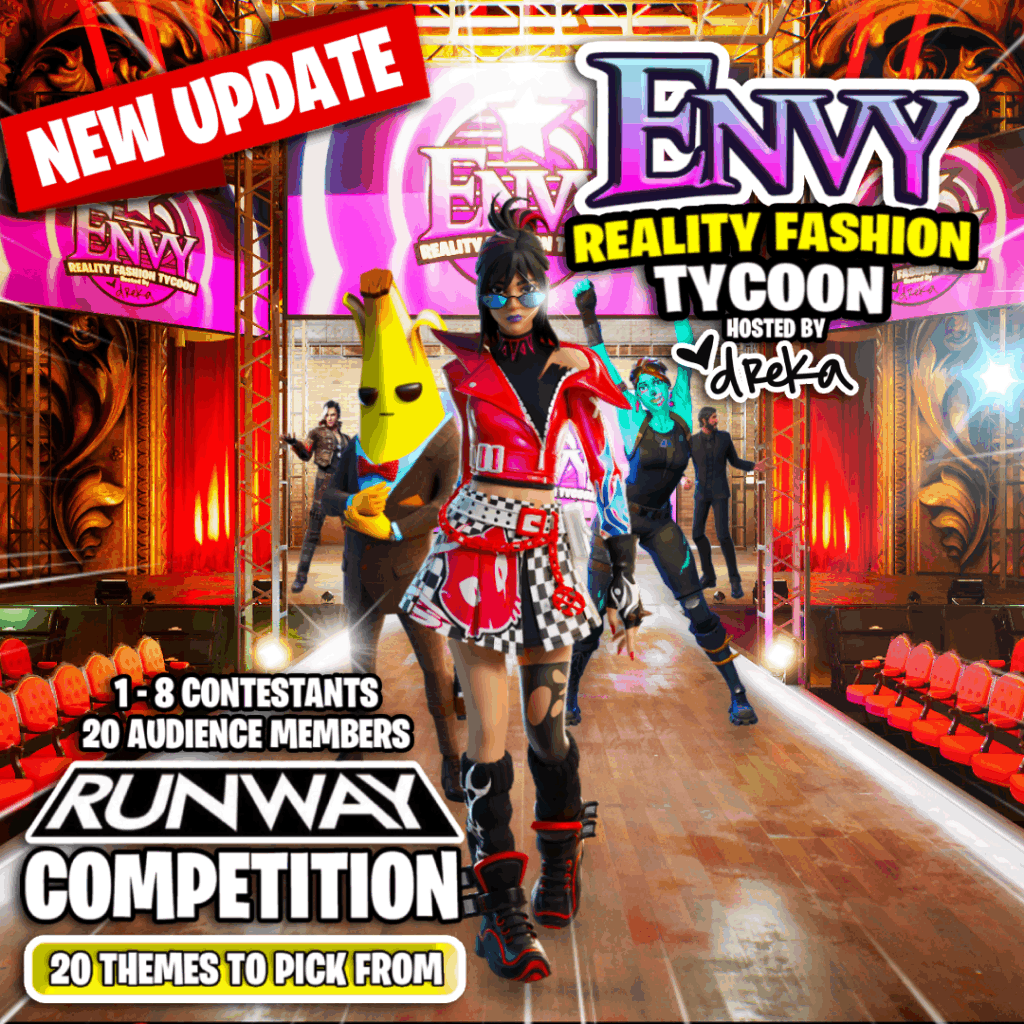 Step into the spotlight in ENVY: Reality Fashion Tycoon Fortnite’s most intense fashion competition show.