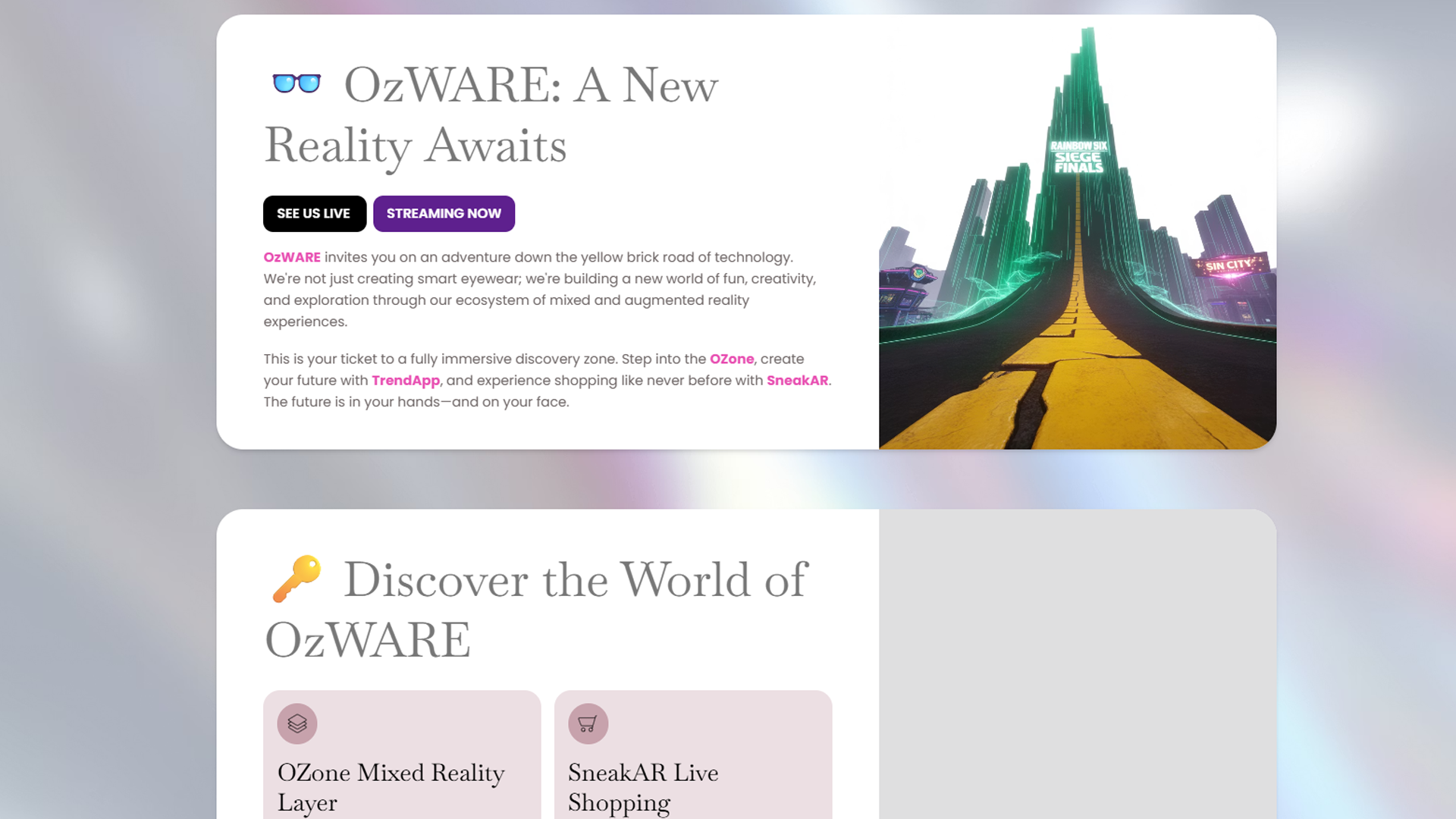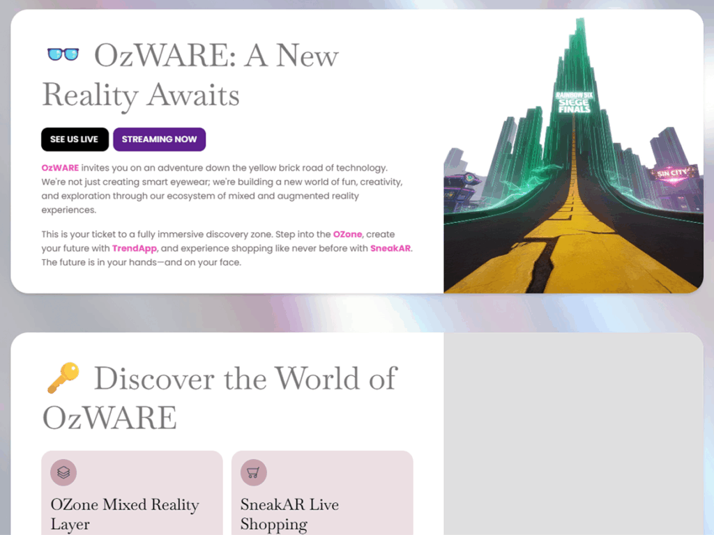 OzWARE invites you on an adventure down the yellow brick road of technology. We’re not just creating smart eyewear; we’re building a new world of fun, creativity, and exploration through our ecosystem of mixed and augmented reality experiences.